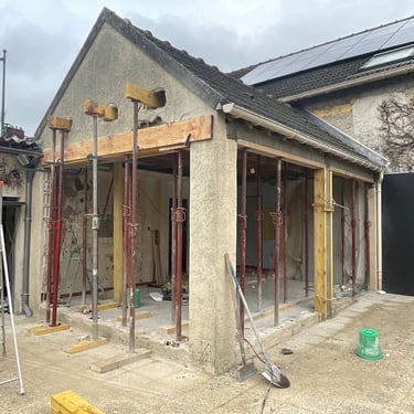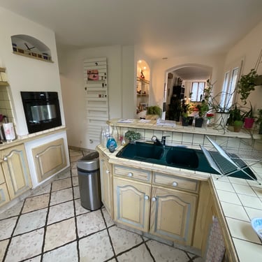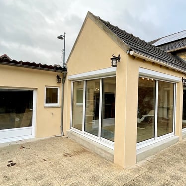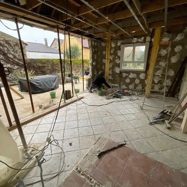 Rénovation de tout un Rez-de-Chaussée : Ouverture murs porteurs, création baies vitrées, carrelage, cuisine, salle de bain, réalisé par maçon et entreprises du bâtiment local Seine-et-Marne (77)