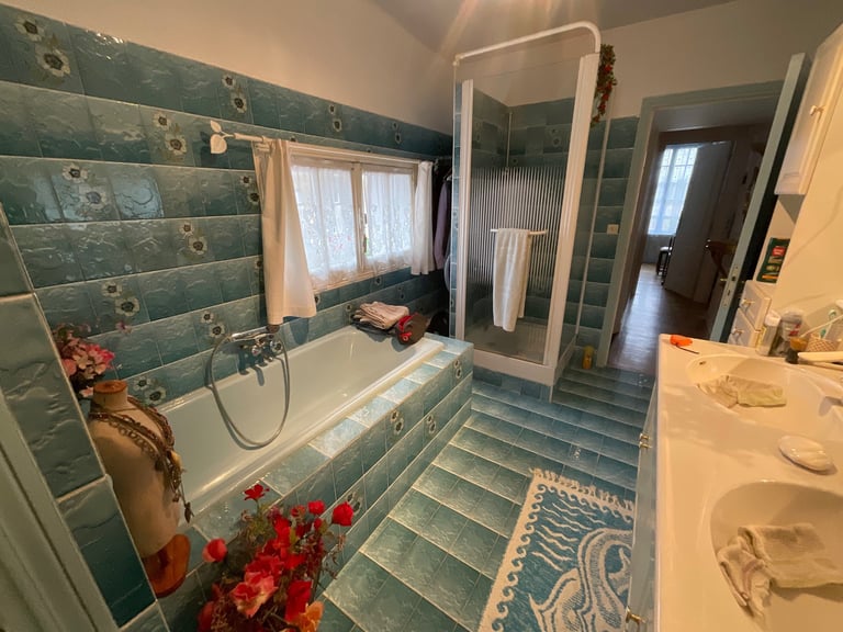 L’un des choix forts de cette rénovation a été la suppression de la cloison des anciens WC, permettant de réunir l’ensemble des fonctions dans une seule et grande pièce. Cette nouvelle configuration offre aujourd’hui un espace plus fluide, lumineux et agréable à vivre.